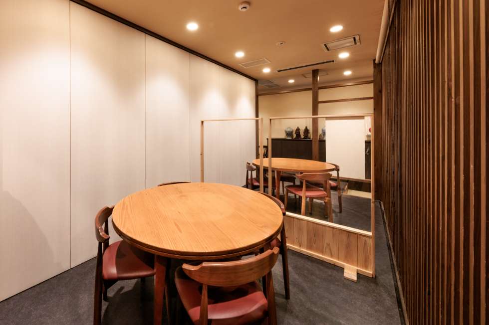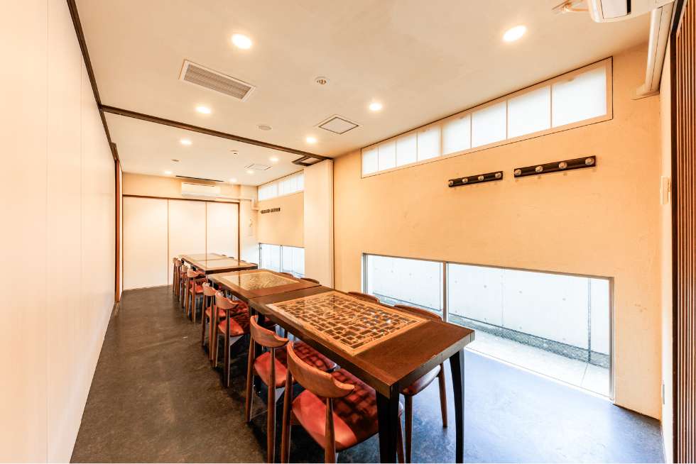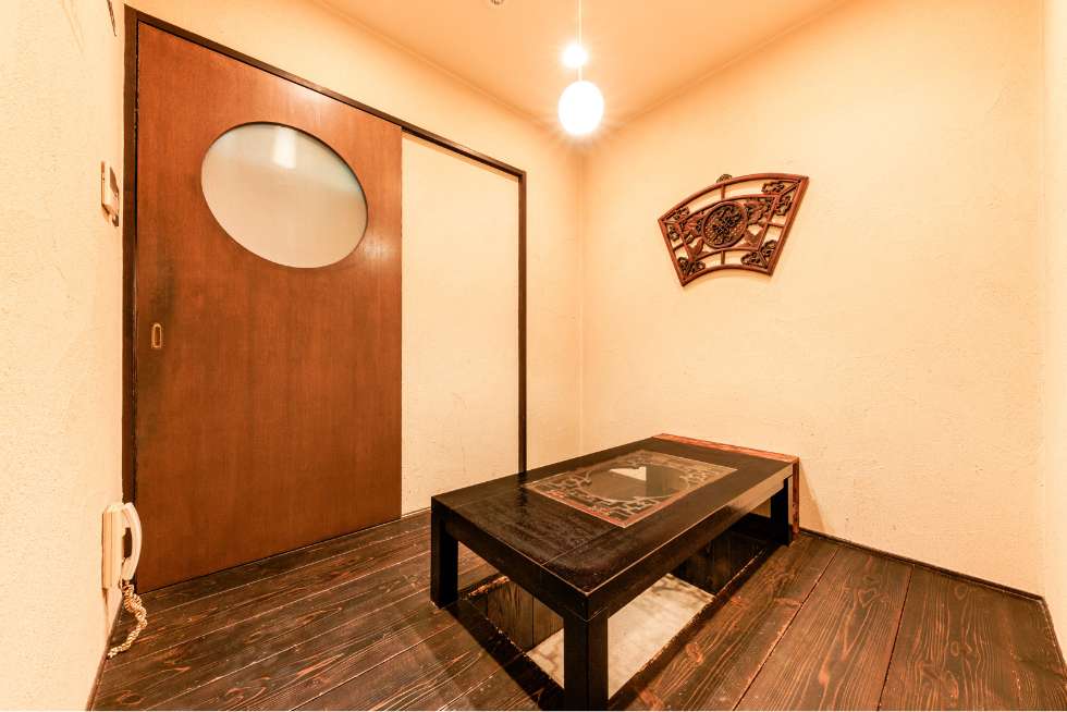 2階はテーブル席、開放感のある吹き抜けのフロアと様々なタイプの個室で少人数のお集まりは勿論、最大80名様迄のご宴会に対応いたします。